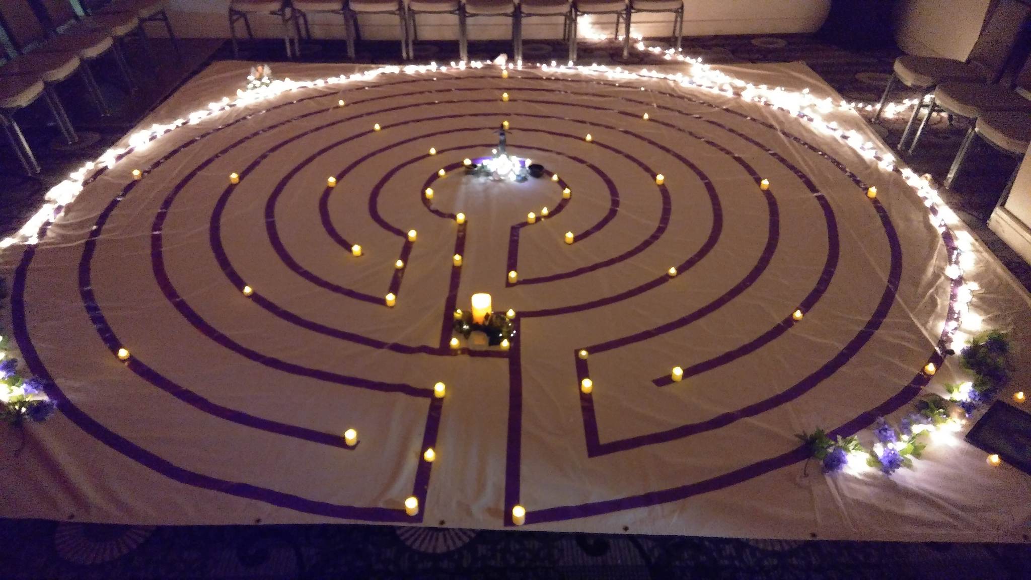 Walk the labyrinth in this After Dark workshop and experience the meditative magic of the labyrinth. Beautifully setup in the Federal room, candles and music bring the experience to life. You can walk the Labyrinth anytime during the time it is open. Allow yourself 10-20 minutes to do so.